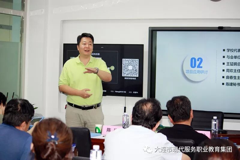 项目编审委员会主任、教育学院职业成人教师教育中心主任曲春生,副主任、现代服务职业教育集团秘书长、大连职工大学、商业学校副校长陈建;项目编审委员会成员:经贸学校副校长张志伟,金融中专副校长王敏,旅游学校副校长曹玉国,集团副秘书长山崴;项目推进办公室成员:经济贸易学校教务主任张晶,商业学校教务主任刘伟,金融中专教务副主任邵艳辉;特邀嘉宾:东北财经大学出版社职教部主任周欢,烹饪中专科研处主任车霞,经贸学校电子商务部主任郭萍,枫叶职业技术学院财经商贸系主任林晓慧,大连商业学校教师于琳琳及集团秘书处项目管理负责人邴凌等代表出席了会议。